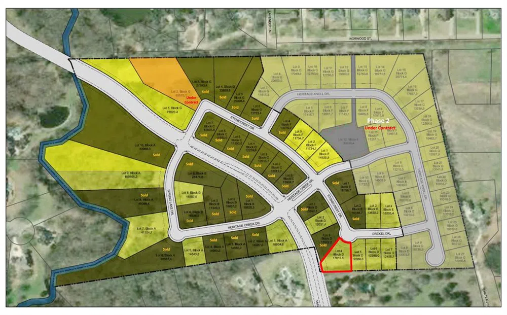 Welcome to Sherman's newest luxury address. Situated in West Sherman between Heritage Parkway and hwy 289, Heritage Crossing is located near shopping, grocery and easy access to hwy 75. Also within a 3 minute drive to Sherman's 18 hole disc golf course, Dean Gilbert Lake, and Pecan Grove West park and athletic complex. Heritage Crossing is offering lots of various sizes to appeal to any potential new resident. Follow the welcoming drive up to winding roads and soaring oak trees. Enjoy beautiful Texas sunsets from your new back porch. Come see everything Heritage Crossing has to offer for your future homesite.