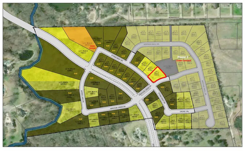 Welcome to Sherman's newest luxury address. Situated in West Sherman between Heritage Parkway and hwy 289, Heritage Crossing is located near shopping, grocery and easy access to hwy 75. Also within a 3 minute drive to Sherman's 18 hole disc golf course, Dean Gilbert Lake, and Pecan Grove West park and athletic complex. Heritage Crossing is offering lots of various sizes to appeal to any potential new resident. Follow the welcoming drive up to winding roads and soaring oak trees. Enjoy beautiful Texas sunsets from your new back porch. Come see everything Heritage Crossing has to offer for your future homesite.
