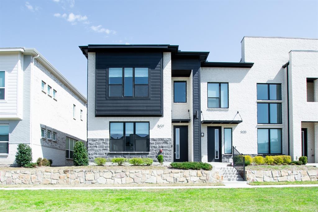 END UNIT with upgrades GALORE! Ample upgrades during construction followed by TONS of paid upgrades after purchase including handscraped hardwood floors, fireplace install, open wrought iron banister, plumbing fixtures in kitchen & baths, $30k+ in custom window shades, chic mirrored kitchen cabinets, tile backsplash, upgraded 3cm bullnose granite, GORGEOUS dining room chandelier, ALL builder-grade carpet pulled out & replaced with high-end custom carpet, rounded corners throughout, add'l can lights throughout, C fans in all bedrooms, raised panel Carrera style interior doors - the list goes on & on! You can't buy this plan for this price brand new, and this one is JUST LIKE NEW condition with every upgrade imaginable AND an end unit! Amazing floorplan featuring AMPLE natural light, 2 living areas, one of the largest master closets EVER, split bedrooms, proper foyer, built-in office desk, extra storage, and more. Excellent location near 75 and 190 just a few minutes from Dallas.