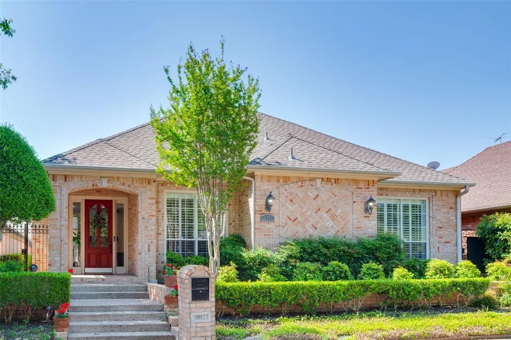 Enjoy a modern one-story brick home in a premium No. Dallas location within the zero-lot line Encore community. Near Preston Forest, Preston Royal & Addison shops and dining, you are minutes to Dallas No. Tollway, LBJ Frwy, and Central Expwy. The home has been meticulously upgraded, featuring hardwoods, special lighting, fireplace, and exceptional remodel of kitchen, breakfast rm & both baths. Outdoor patio views from open living and dining provide wonderful entertaining spaces. The cook’s kitchen has quartz counters, premium appliances, lovely cabinetry, and breakfast room. The luxurious primary suite is a “retreat” with sitting area, spa like bath with two vanities, garden tub, separate glass shower with multiple shower heads and custom walk-in closet. Two additional bedrooms share one fully modern bath. Large utility room has additional walk-in storage-bonus room. Upgrades include HVAC & ductwork, resurfaced painted walls, prem. hardware, landscaping, 2-car attached garage & more.