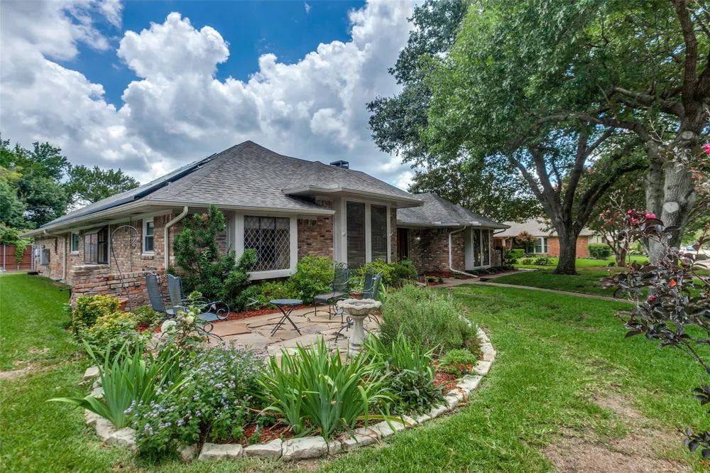 This charming traditional home, zoned to highly sought-after Moss Haven Elementary, is ideally situated on a beautiful tree-lined street. Inside, a spacious living room with 10-foot ceilings, crown molding, a gas log fireplace, wet bar, and expansive windows opens to a serene courtyard leading to the backyard oasis. Step outside to enjoy the covered patio, rock-edged lagoon-style pool, and spa which is perfect for relaxing or entertaining. The kitchen offers a generous breakfast area, painted cabinetry, granite countertops, prep island, gas range, and built-in microwave, seamlessly connected to a second living space with parquet wood floors and custom built-ins. The primary suite features a spa-inspired bath with dual vanities, two walk-in closets, a garden tub, and separate shower. Outdoor living continues in the front yard, with a charming garden and seating area ideal for morning coffee or evening gatherings. Located on the desirable south side of the street and just minutes from top-tier shopping, dining, parks, and entertainment. A new roof was installed in 2019. Don’t miss this opportunity to update and make this inviting home your own!